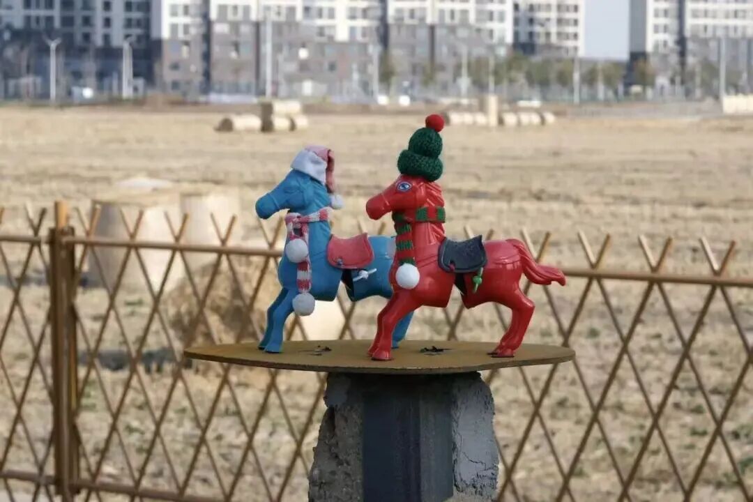 “比如这个桩头,带孔的石头里有一只小陶马。这个石头是我们从村里捡回来再利用的。”高艺峰说。这些分布在村里的拴马桩既是公共艺术,也是多方共创的成果。