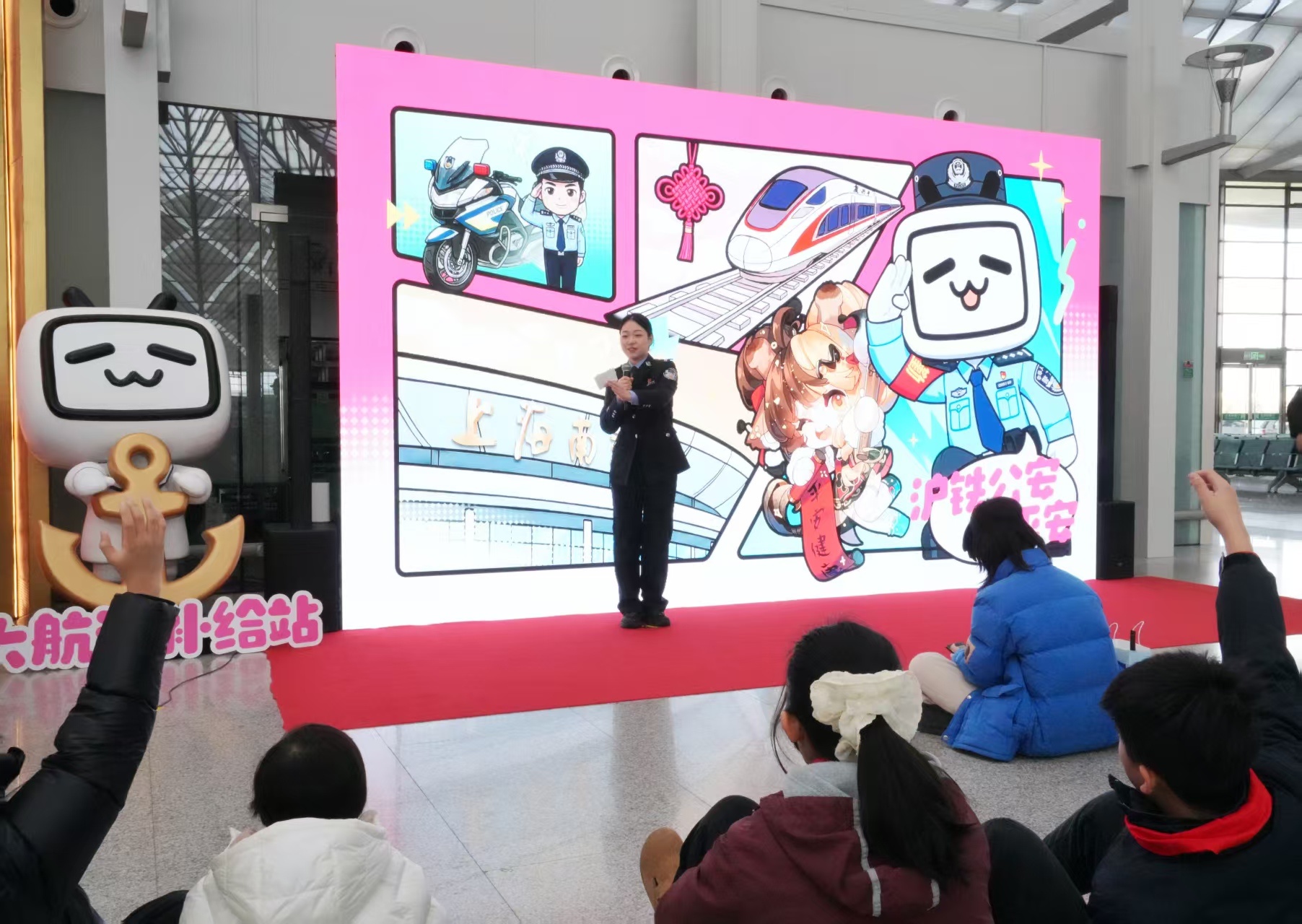 2月1日的上海南站,春运返乡客流渐次攀升,一场兼具新意与温度的安全宣传活动在此温情启幕。上海铁路公安处在上海南站开展“沪铁公安护平安”春运主题安全宣传活动,9位B站人气虚拟主播跨界联动铁路民警,以线下展演、有奖问答等形式,为奔波在返乡路上的旅客们送上了特殊的“安全大礼”,春运筑牢安全第一道防线。