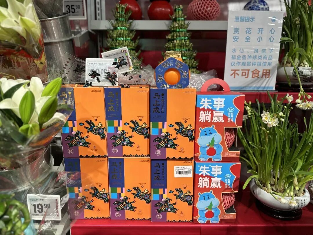 传统的年宵花也玩出了新花样。过去以水仙、蜡梅为主的市场,如今出现了“养成系”年宵花,成为记录年味渐浓的温馨载体。盒马鲜生融合陕西非遗彩贴剪纸技艺,推出“马上成”朱顶红。“消费者可以在等待它成长、开花的过程中参与互动,装扮家居。这不仅仅是一盆花,更像是一个陪伴成长的新年项目。”陈挺介绍。