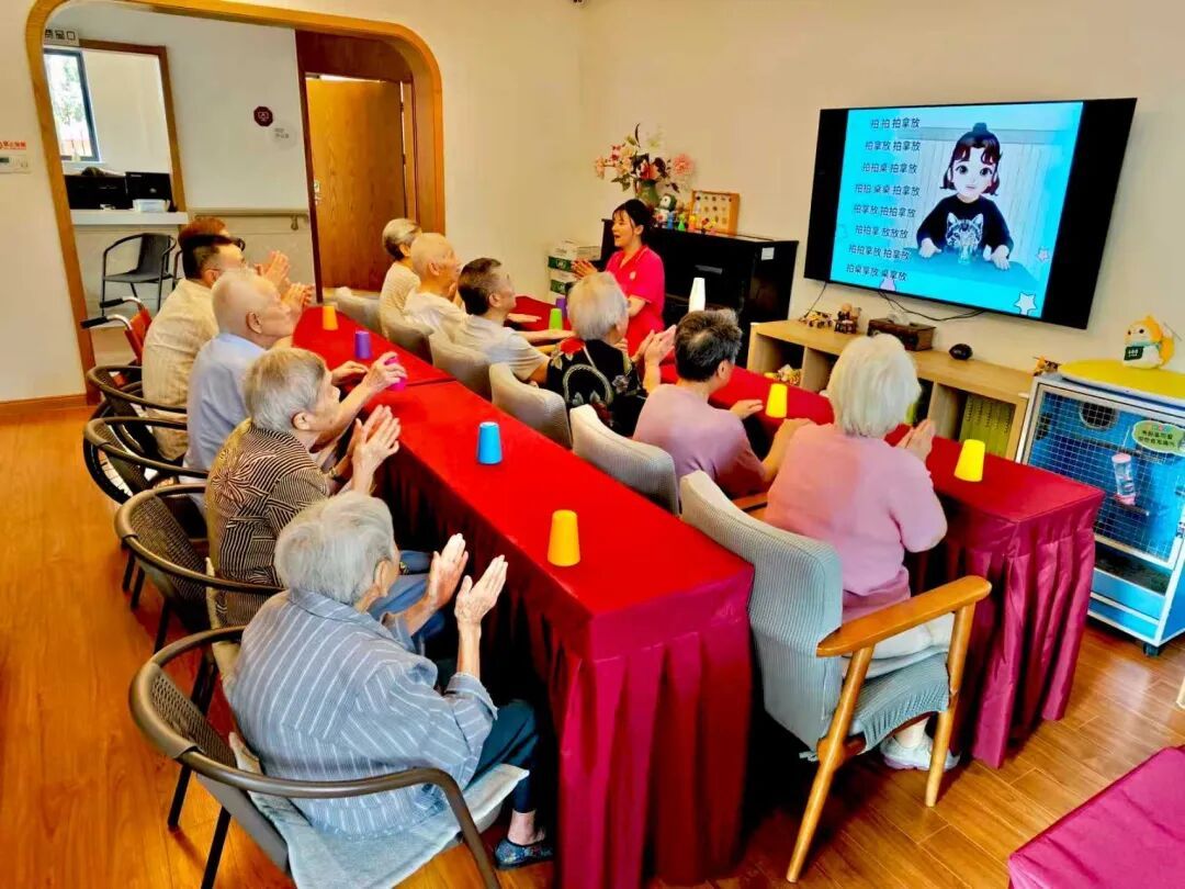 这一成效的达成,更离不开永康养老院“从心出发,守护‘泾’彩记忆”的服务理念,以及“居、智、园、音、玩、非遗”六位一体服务体系的专业支撑。在空间打造上,机构还原家庭生活场景与社区熟悉布局,让长者感受“家”的归属感,减轻不安情绪;依托智慧照护系统,实时监测长者心率、活动轨迹、睡眠状况等关键数据,通过异常预警与行为分析,精准防范跌倒、徘徊等风险,筑牢全时安全防线;花园式庭院中四季花木繁茂,为长者提供漫步休憩的自然空间,在生机盎然的环境中舒缓身心;传统广播、奥尔夫律动、脑波音乐等多样形式融入日常,以柔和节奏唤醒情感记忆、调节昼夜节律,助力改善睡眠;趣味游戏、怀旧互动、团体协作等活动激发长者参与热情,在轻松氛围中锻炼认知与动手能力,重建社交联结;手作、空灵鼓、珠心算、黄道婆非遗技艺等非药物干预疗法,让长者在触摸文化根脉的过程中活化思维、收获成就感,为晚年生活注入精神力量。