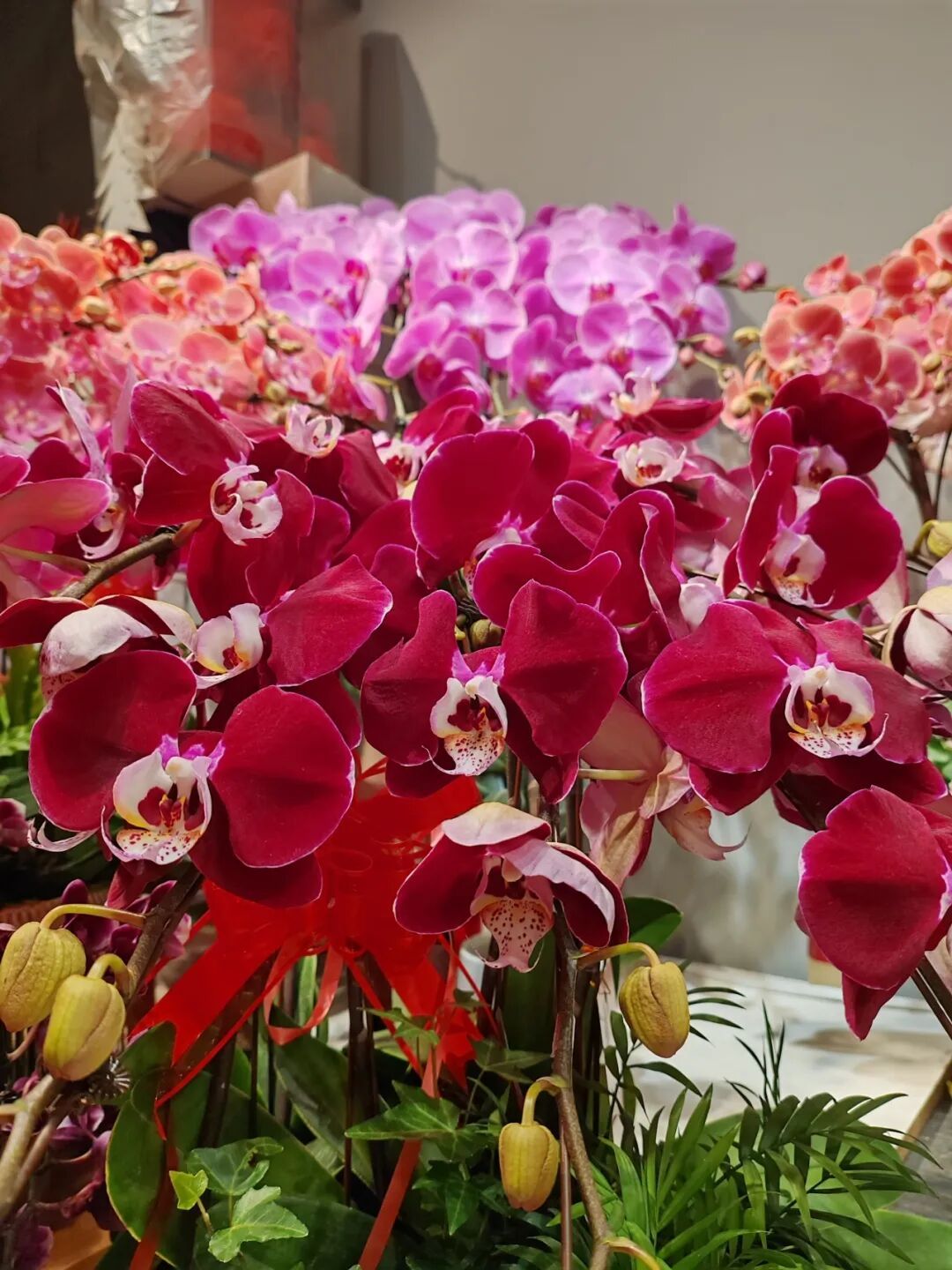 走进古北花世界,满眼皆是姹紫嫣红,繁花簇拥间,喜庆的气息扑面而来。清雅脱俗的蝴蝶兰亭亭玉立,层层花瓣舒展,尽显雅致风姿;挂满鲜红果实的冬青盆栽,红果缀枝、饱满鲜亮,像一串串小灯笼,点亮了整个花市的喜庆底色;挺拔翠绿的富贵竹节节向上,寄托着步步高升的期许;清香袅袅的水仙凌波盛放,暗香浮动沁人心脾;硕果盈枝的金桔树枝繁叶茂,金黄的果实寓意着金玉满堂;造型别致的朱顶红蜡球形态奇特,散发着淡淡的清香,自带吉祥韵味。