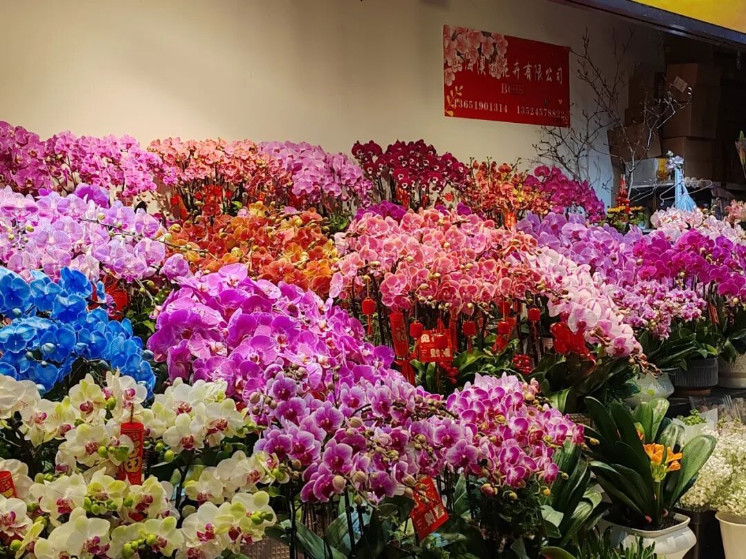 “我们就住在这附近,每年春节前都会来这儿买几盆年宵花。这里品种全,挑选范围广,价格也实惠,摆在家里添点年味,心情也变得更好。”正在精心挑选蝴蝶兰的居民李女士笑着说。