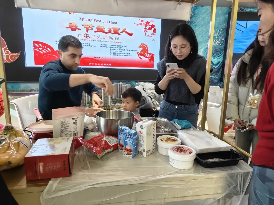 除了主舞台,1690党群服务中心内还设有多处年味十足的“主理人体验区”。传统民俗区内,大家写春联、剪窗花、做灯笼、品糖葫芦,亲身感受传统手作的魅力。住在附近的居民李丽洁感慨道:“让外国友人接触到中国年俗,本身也是中国文化开放包容的一部分。看到他们这么投入,觉得特别温暖。”