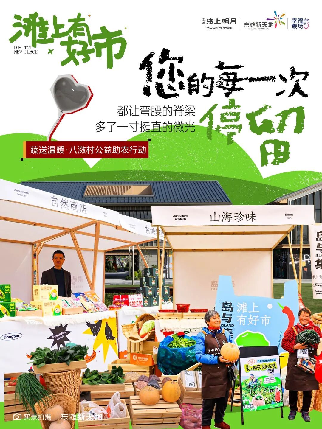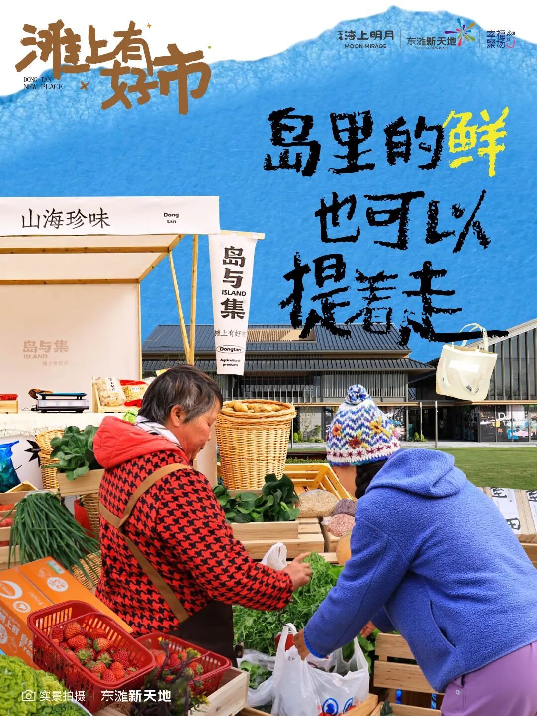 除了商业配套的持续升级,东滩新天地还以“岛与集”周末集市为固定载体,持续推进八滧村公益助农行动。集市上,陈家镇八滧村的留守老人带着自种的新鲜蔬菜、草莓等农产品前来售卖,当日采摘、直达餐桌,收益直接流入农户手中,既让村民的劳动成果走出田间,也让居民吃上原生态的农家食材。