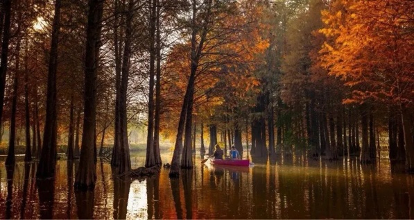 前往西沙明珠湖,看数百只大雁在晨光中列队起飞,感受生命震撼。中午可在明珠湖餐厅用餐,品尝明珠湖鱼头汤、崇明白切羊肉等特色美食。下午的重头戏,体验湿地游船,滑入冬季变为绯红色的落羽杉水上森林。树影婆娑,倒影如画,仿佛闯入一个与世隔绝的静谧星球。