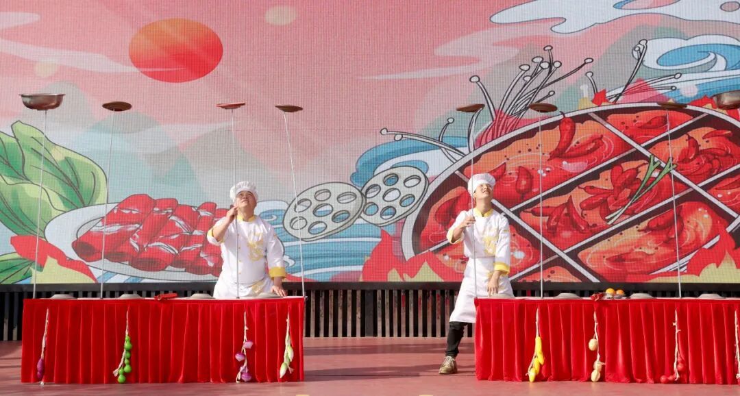 舞台区域,文艺演出好戏连台。杂技《年味时光》中,演员化身“厨神”,用顶杆让碗盘旋转不停,创意十足;悠扬的葫芦丝独奏《阿瓦人民唱新歌》、女声独唱《好日子》等节目精彩纷呈,掌声不断。最后的歌曲《欢乐中国年》,将喜庆祥和的节日氛围推向高潮。