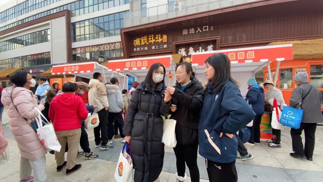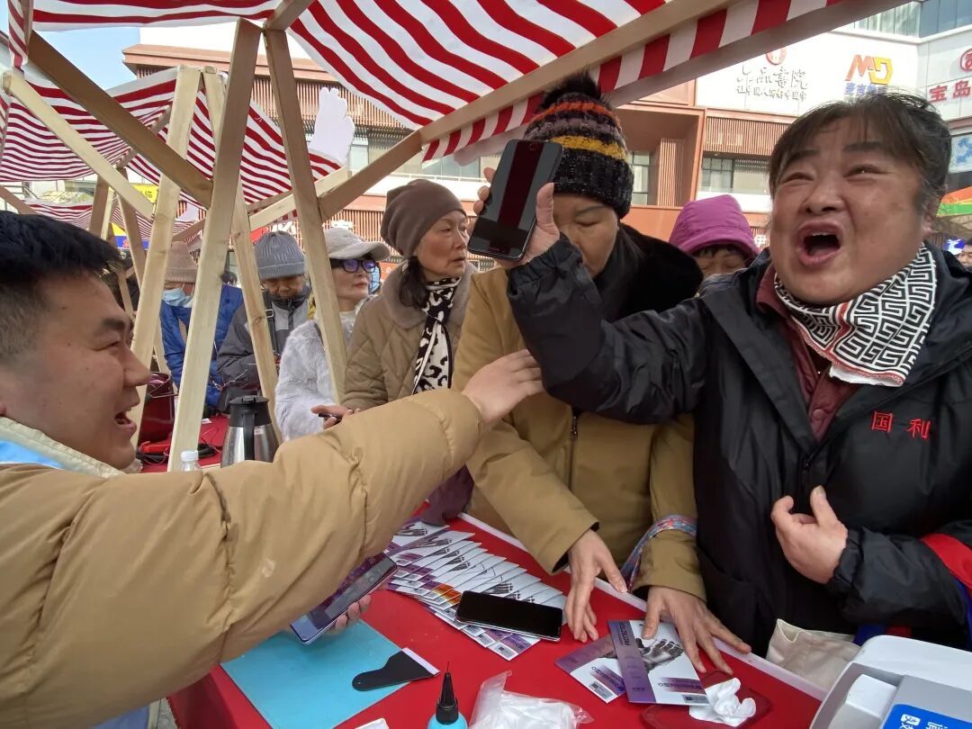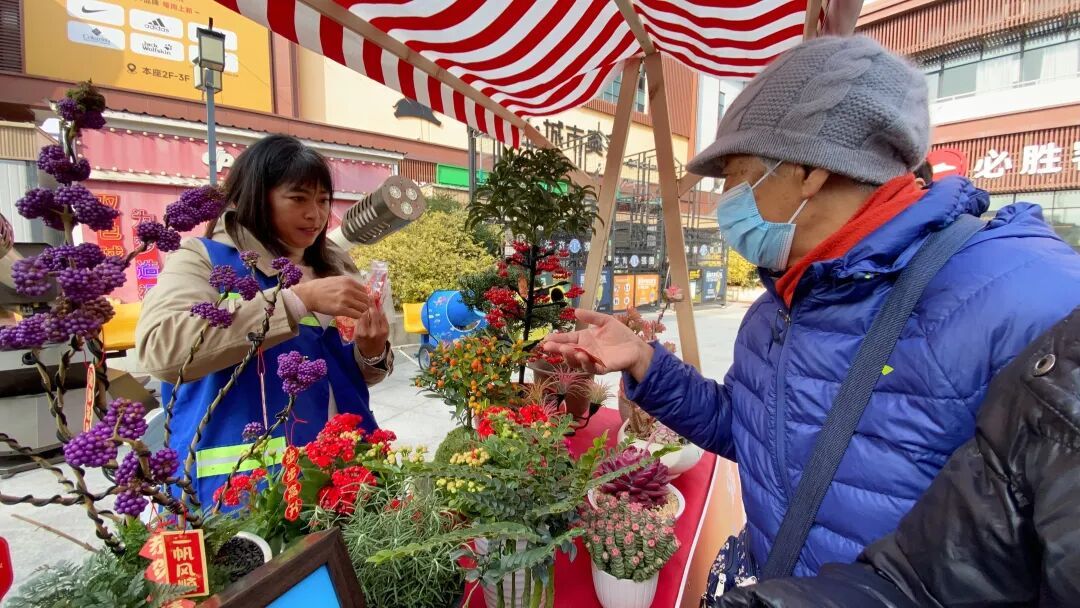 手机贴膜摊位同样人气爆棚,志愿者细致地清洁屏幕、精准贴膜,两个小时贴了五六十张,不少居民贴完后说“跟新手机一样!”针对新就业群体,活动设立专项摊位,提供全媒体运营师考证等咨询,“考证有补贴,市区两项补贴加起来能覆盖全部费用,能帮我们更好找工作。”春节临近,活动还融入民俗元素,设立公益价年宵花卉售卖、非遗文化展示等摊位。