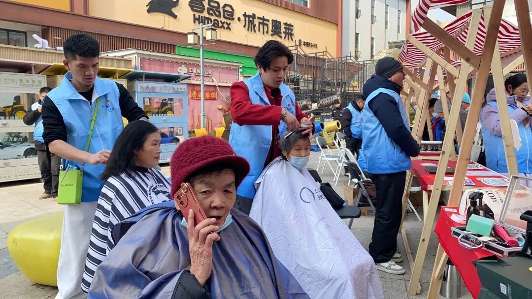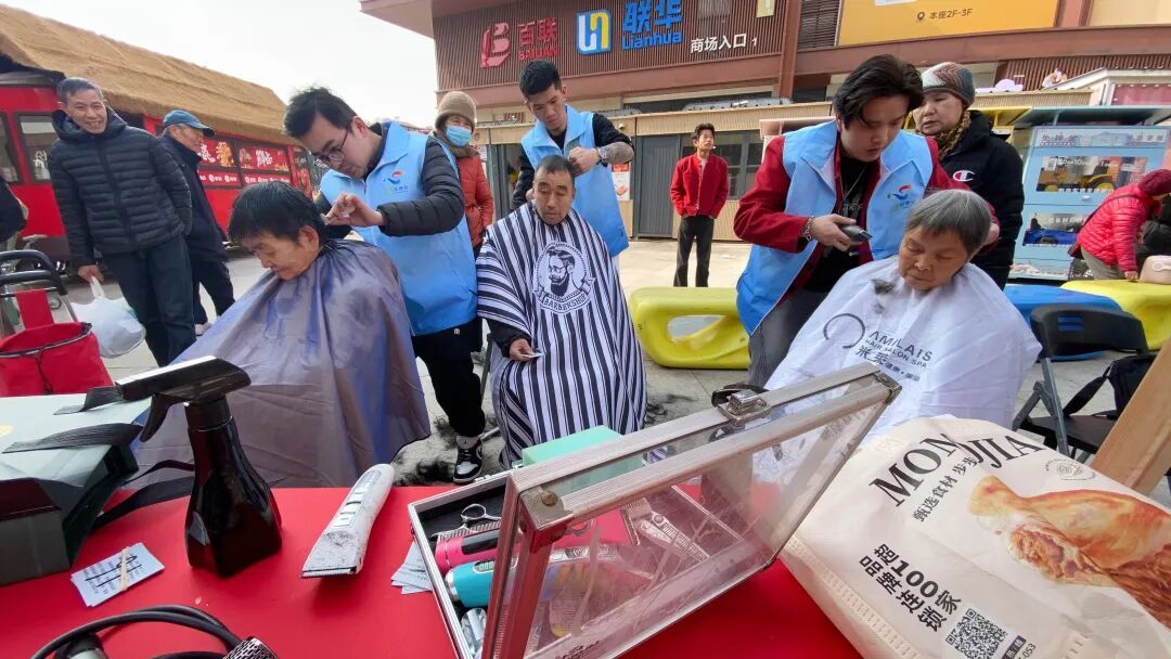 现场还推出了一系列接地气的便民措施。免费理发摊位前,专业理发师耐心服务,“马上要过年了,剪个头发,清爽过年!”刚剪完头发的一位阿姨十分满意,还打电话叫邻居过来体验。由于人太多,店长又加派了一名理发师,采取取号方式有序服务,两个小时就为十几位居民理完了发。