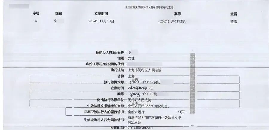 让两名保姆震惊的是,经多方打听得知,李某自2023年起就已被多家法院列为失信被执行人,限制高消费。多次上门讨要欠款无果后,无奈之下只能选择报警求助。