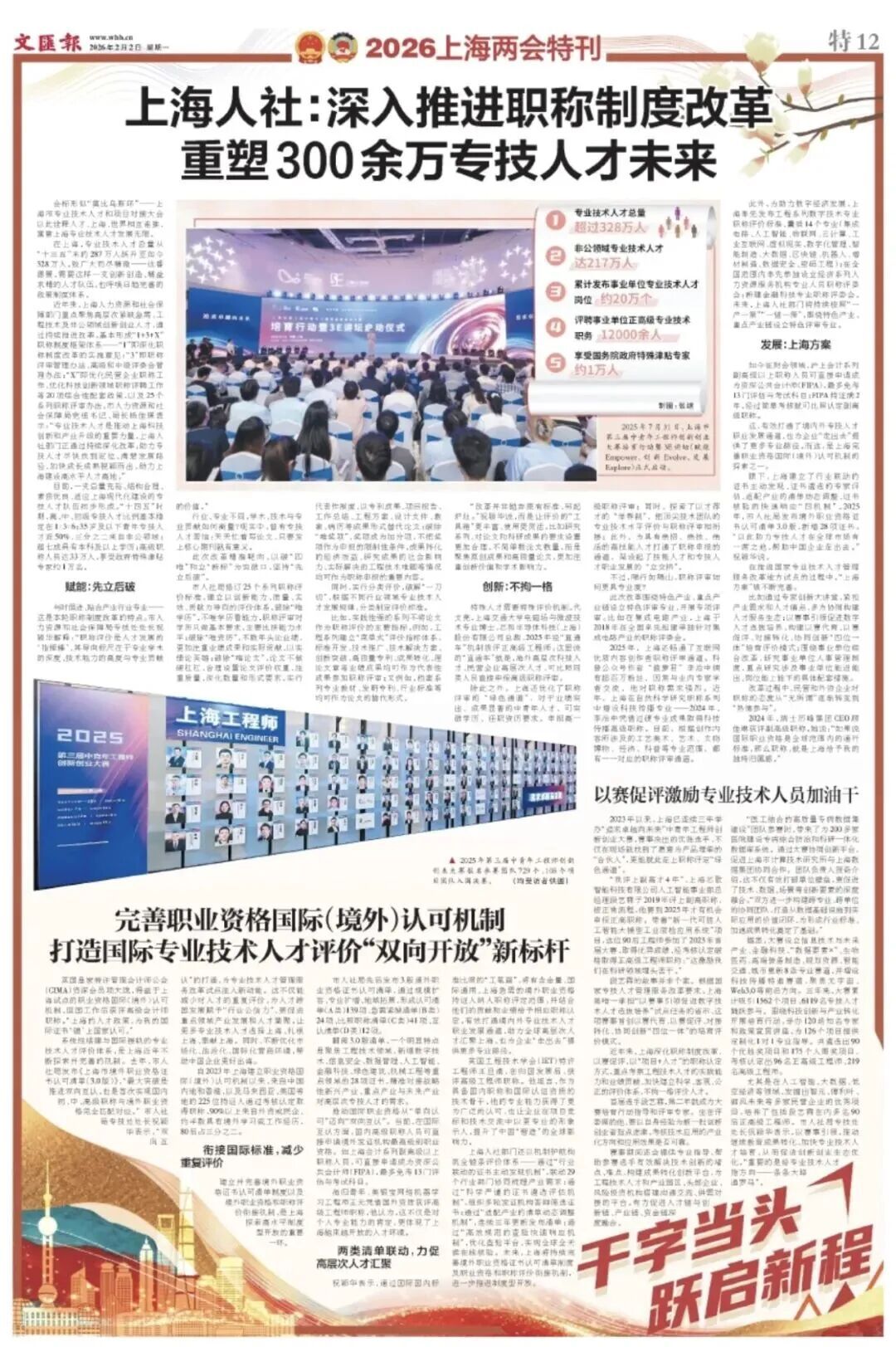 在上海,专业技术人才总量从“十三五”末的287万人跃升至如今328万人。致广大而尽精微——这番愿景,需要这样一支创新创造、精益求精的人才队伍,也呼唤日趋完善的政策制度体系。