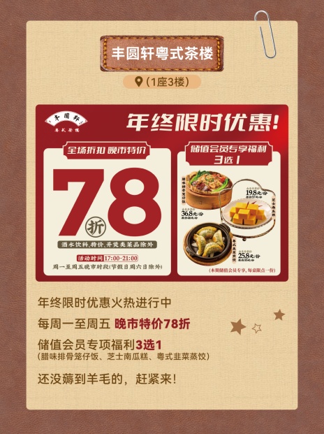 沪味小馆、丰圆轩粤式茶楼、东北灶、红料理、比星咖啡、廣莲申、米村拌饭、DQ冰激凌、一绪寿喜烧、悦璞食堂、Wagas、麦记牛奶公司、GODIVA 等商户纷纷推出新春限定新品与专属特惠,无论是家庭团圆聚餐、好友结伴小聚,还是单人休闲简餐,都能找到心仪风味,让每一段假期时光都有美食相伴。