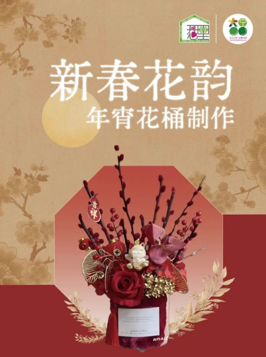《新春花韵》年宵花桶制作活动,以吉祥花卉与特色福桶为载体,在专业花艺师指导下打造寓意团圆繁荣的年宵花桶,用传统美学装点家居,为新春增添浓厚文化仪式感。