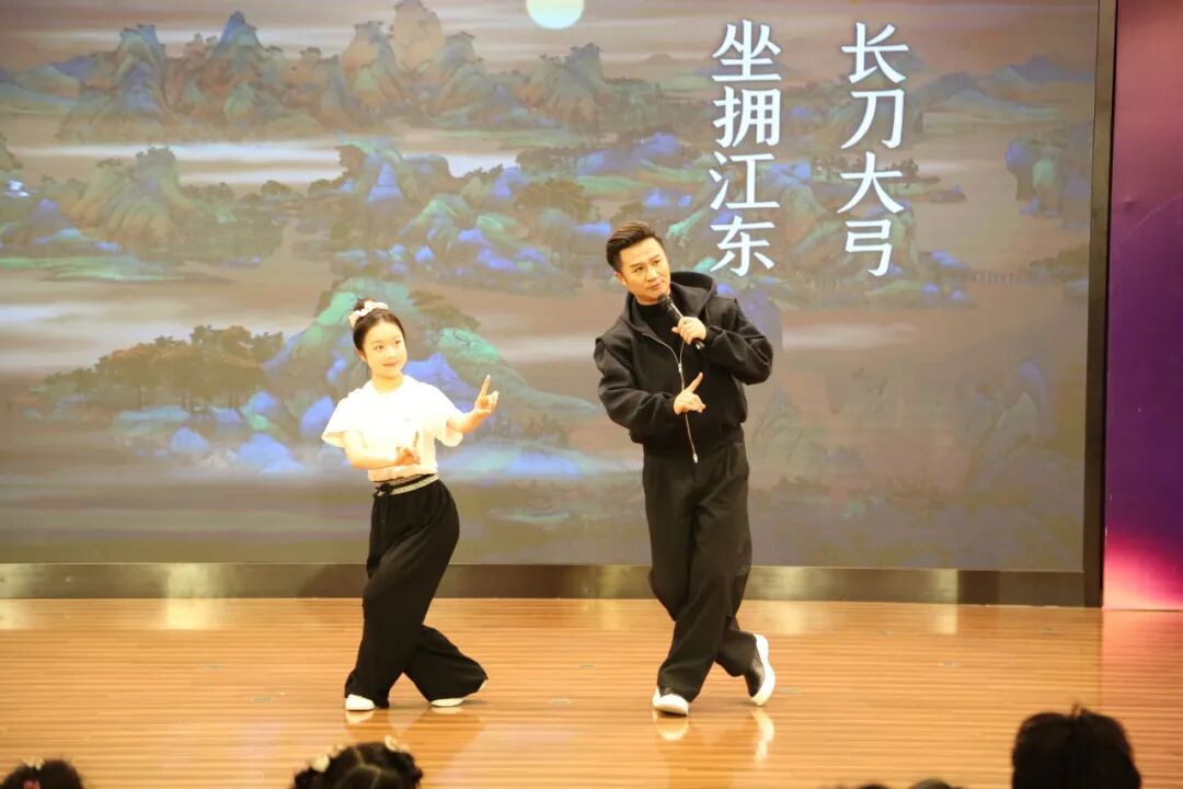 现场,他借《玉簪记·琴挑》【懒画眉】的婉转水磨调,让师生沉醉于昆曲“字正腔圆”的柔美意境;他还邀请了上海戏剧学院附属戏曲学校京剧表演专业学生汪易楠展示了程式动作,拆解昆曲表演的精妙细节。