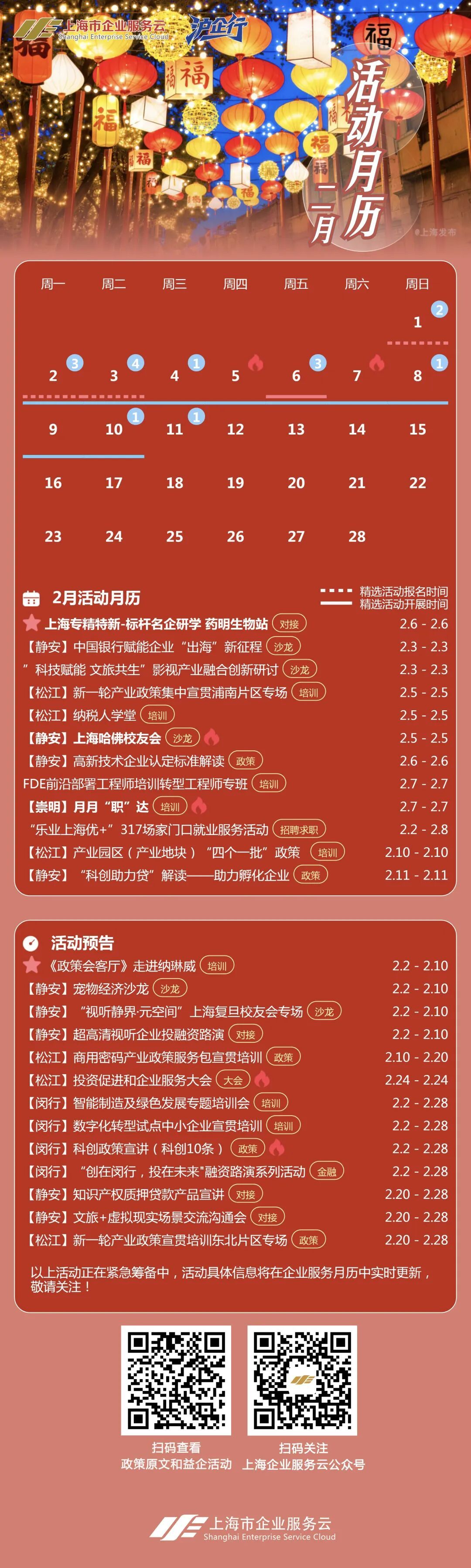 【沪企行】2月政策活动月历!上海申报类政策、益企活动预告排片请查收!