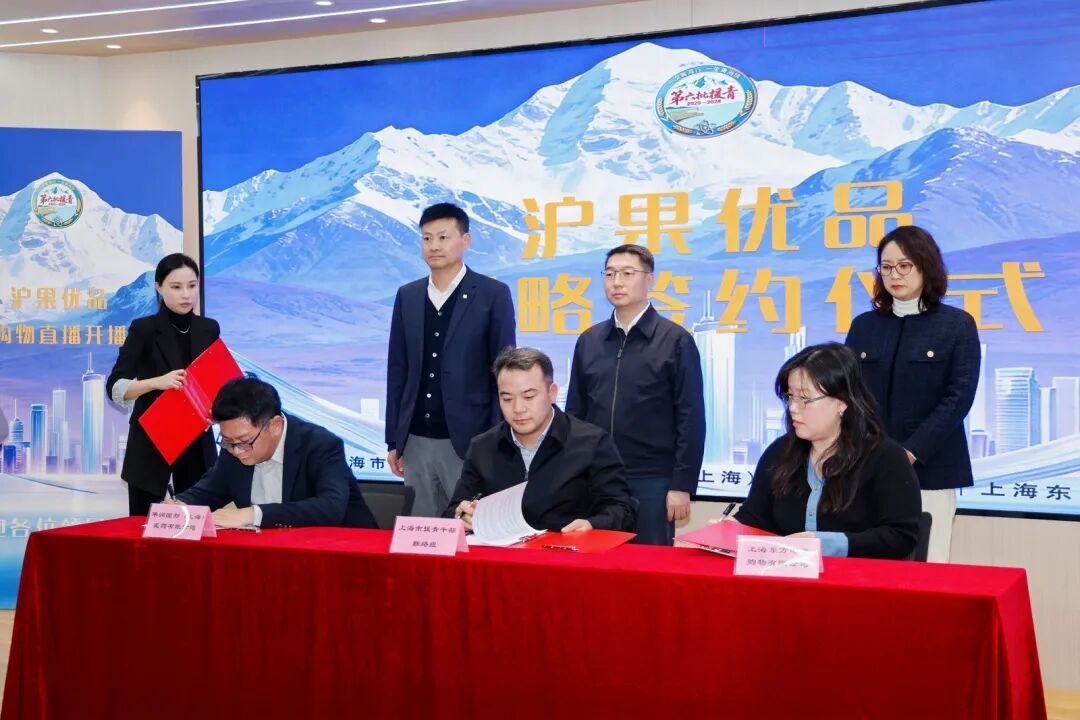 期间,三方代表共同签署了战略合作协议,并举行了简短的授牌仪式,正式确立在消费帮扶、产品推广、供应链优化等领域的长期深度合作关系,为“沪果优品”项目的可持续发展奠定了坚实基础。