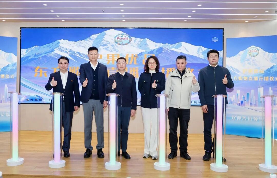 1月29日下午,由上海市援青干部联络组、华润国邦、上海东方电视购物有限公司共同主办的“沪果优品”东方购物直播销售开播仪式,在华润国邦成功举行。上海市援青干部联络组组长、果洛州委副书记、副州长、上海市人民政府驻西宁办主任田哲,华润医商集团党委委员、副总经理郭俊煜,东方数智购商务有限公司党委书记、总裁李卉蓉,上海市政府合作交流办对口支援处、果洛州工信局及华润国邦、东方购物以及上海市援青干部联络组相关同志出席。此次活动标志着上海对口支援果洛州消费帮扶工作迈入“电视+电商”深度融合的新阶段,为雪域高原特色产品搭建起直达东部市场的“云端快车道”。