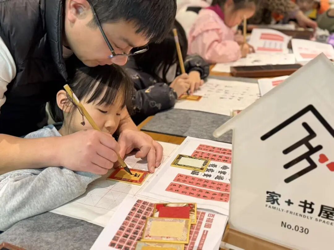 作为上外书店“家+书屋”系列活动之一,日前,“织锦承韵、笔墨留痕——宋锦书法相框手作体验”活动在上外书店举行。15组亲子家庭齐聚一堂,在笔墨挥毫间感受墨香与锦绣交融的独特魅力,在亲子协作中体悟传统文化之美。