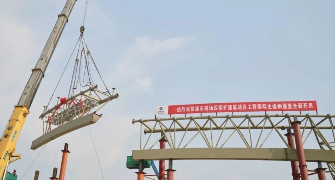 2月1日,浦东机场四期扩建工程航站区工程国际主楼钢屋盖全面开吊,此举标志着T3航站区工程正式转入钢结构安装的核心攻坚阶段。