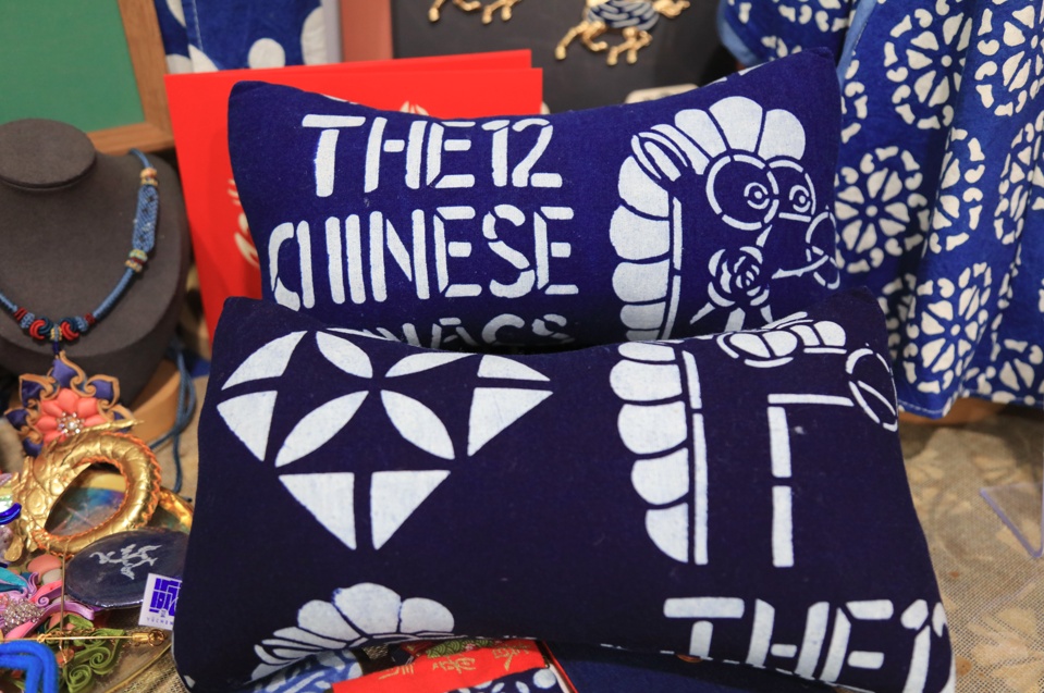 考虑到安亭作为汽车城的特色,团队专门开发了车载颈枕,将药斑布染制的生肖马图案置于其上,既舒适又富有文化趣味。