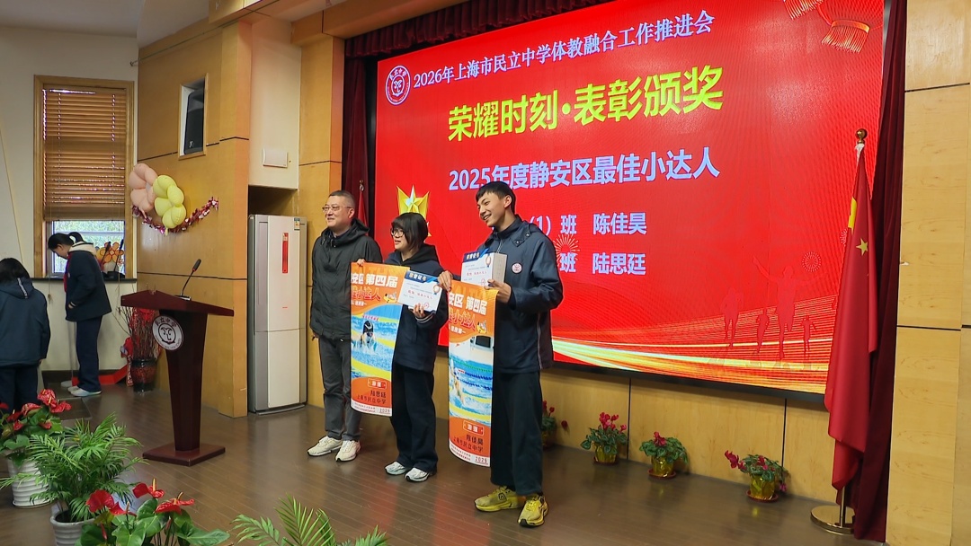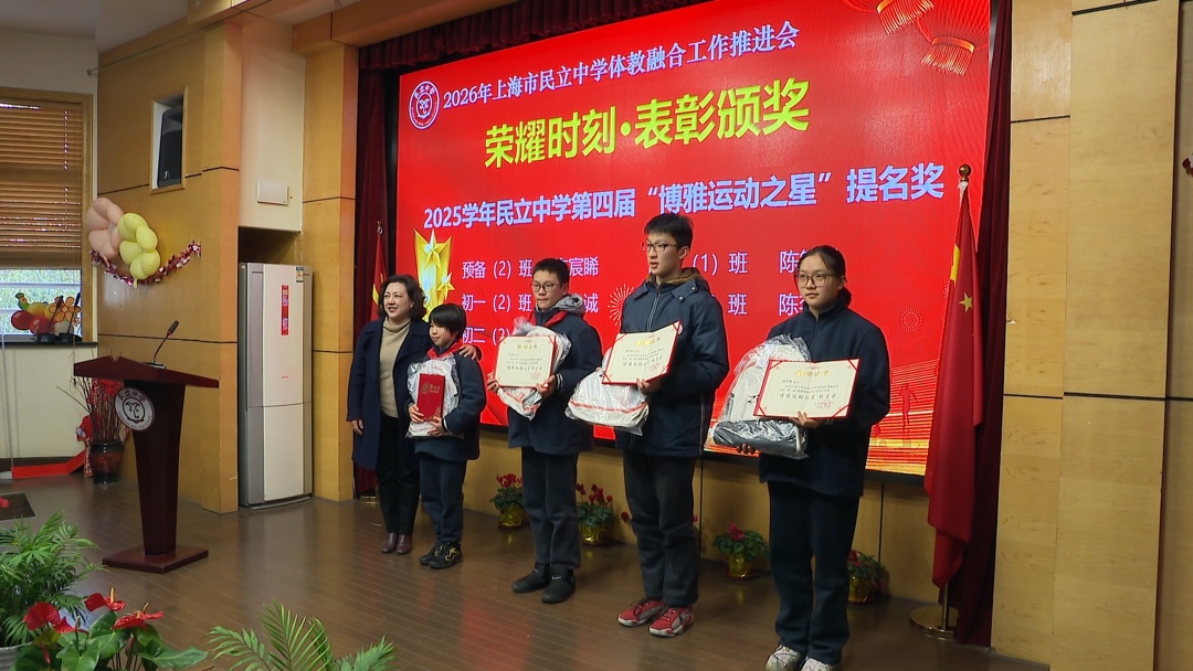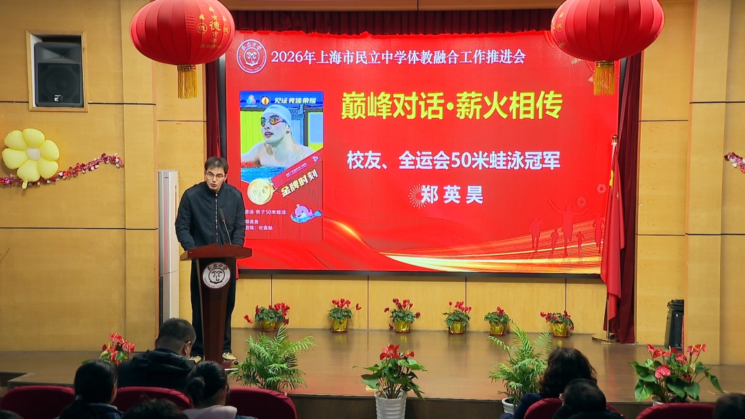 近日,上海市民立中学举办2026年体教融合工作推进会暨第四届博雅运动之星、第二届博雅健康达人评选总结表彰会。特邀嘉宾全运会游泳冠军郑英昊及其主管教练杜夤喆,与区教育局相关负责人、全校师生代表、获奖学生与家长齐聚一堂,共同回溯2025年体教融合丰硕成果,擘画高质量发展新蓝图。