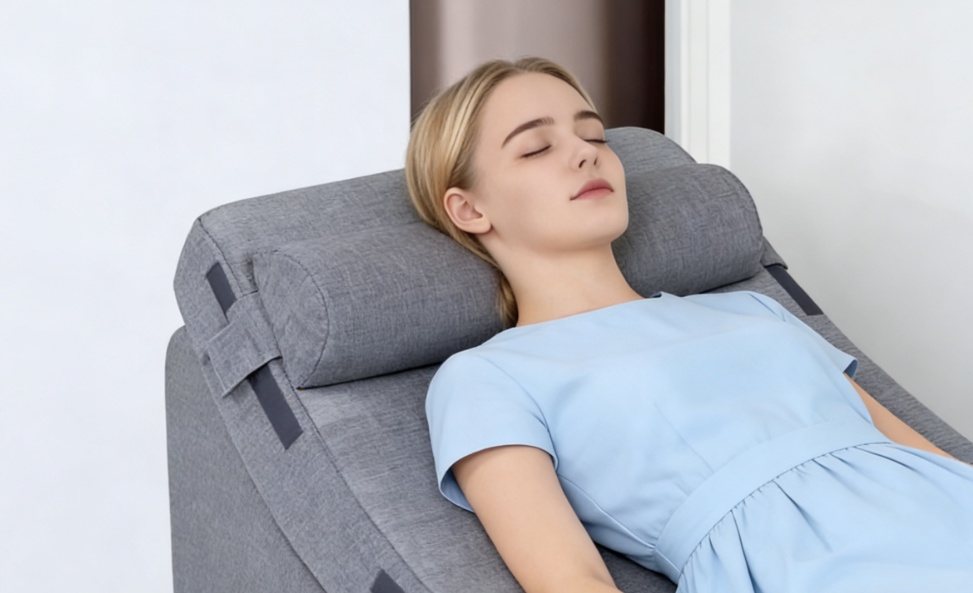 很多青光眼患者可能会疑惑:难道睡觉就不能抬高头部了吗?并非如此,研究强调,要避免单纯堆叠枕头(用两个普通枕头将头部抬高20-35°),这种方式容易导致颈部折叠,诱发颈静脉受压,进而影响眼压。如果确实需要通过调整体位来辅助控制眼压,建议选择楔形斜坡垫,从腰部起整体抬高上半身,这样能确保头颈部保持直线,有效避免颈部血管受压,既舒适又安全。
