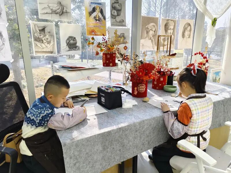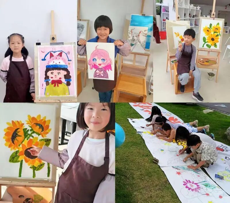 这正是本次美育启蒙计划希望营造的氛围——不局限于传授刻板技法,而是在生活与自然的鲜活场景中,唤醒孩子们对美的感知。在这里,孩子们可以尝试各种工具和材料,在游戏化的学习中感知色彩和线条,通过各种形式自由探索,在鼓励中创造出属于自己的独特艺术表达,收获满满的成就感。