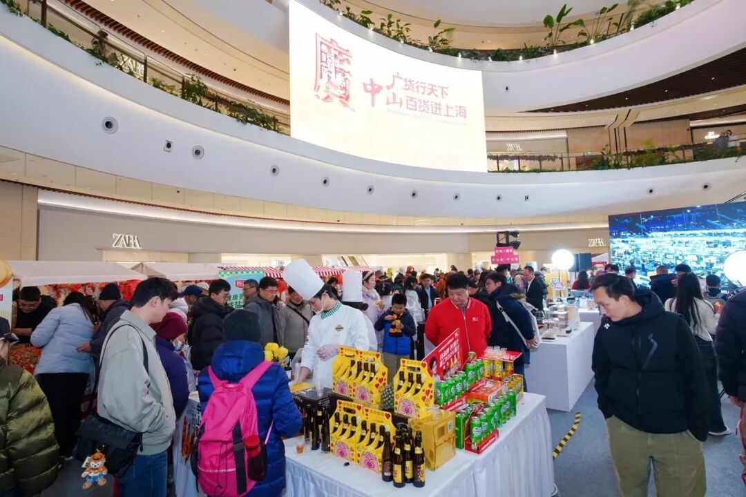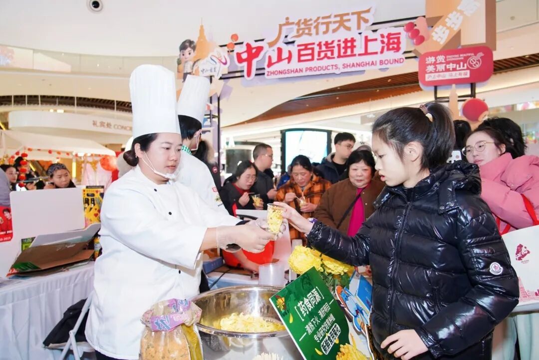 咀香园杏仁饼、黄圃腊味、石岐乳鸽、工业机器人、国产无人机……日前,“广货行天下·中山百货进上海”活动在上海瑞虹新天地太阳宫举行。