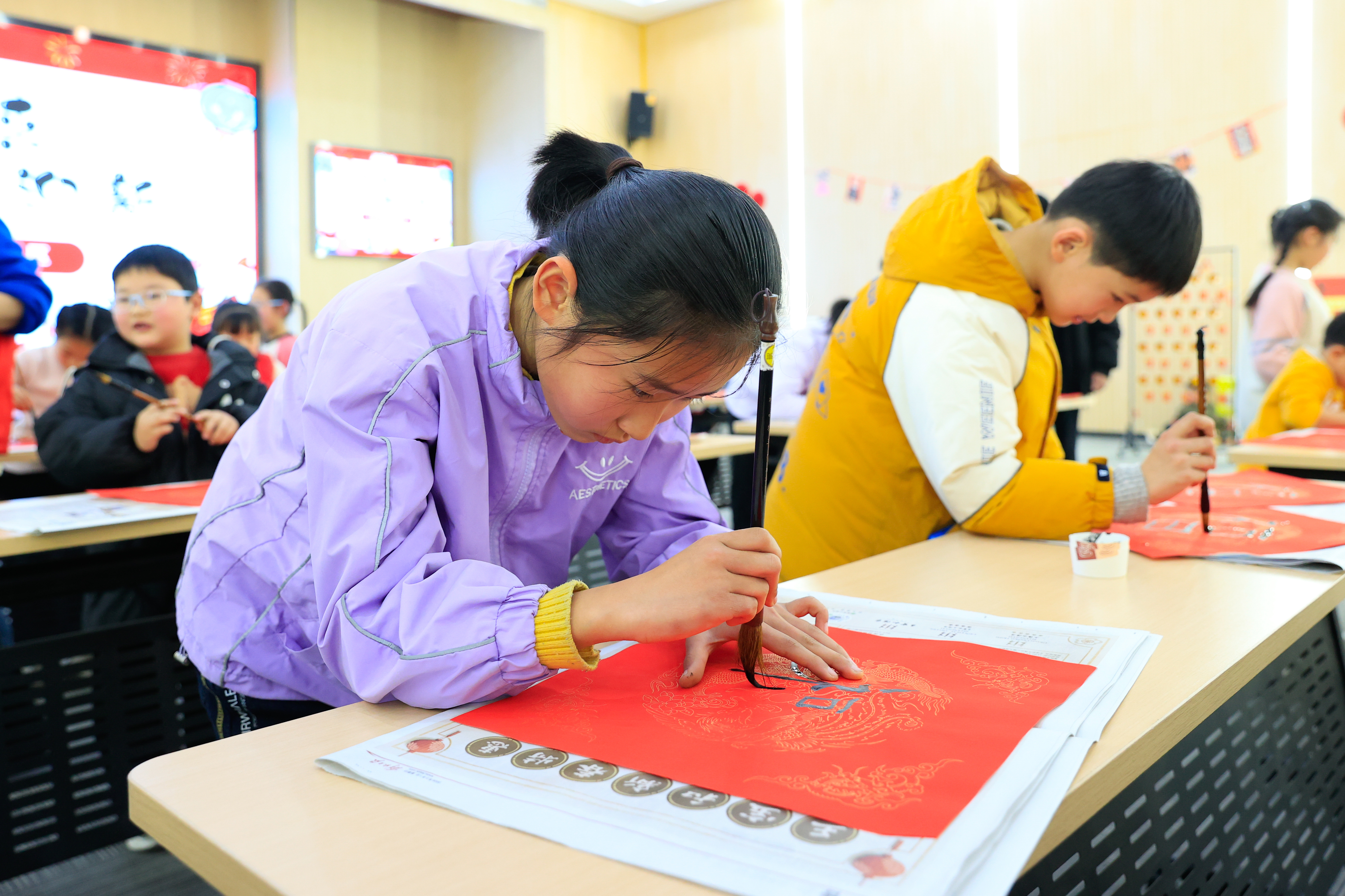 居民在“写福”,用毛笔在红纸上写“福”字。