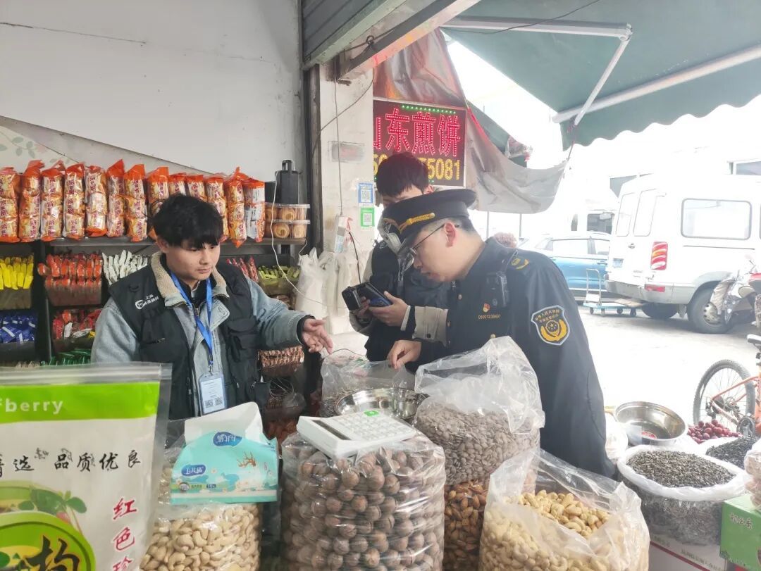 金山卫市场监管所与金山卫镇社事办、市民代表、检测机构等一起来到金山卫市场,在各类农贸产品摊位前,新年市民餐桌上常见的笋干、红枣、瓜子等货品充足,抽检人员重点检测了水果、蔬菜、干货、糖果、调味料等产品。在北泰路盒马超市,抽检人员还将一款市民反映的红薯纳入检测范围。