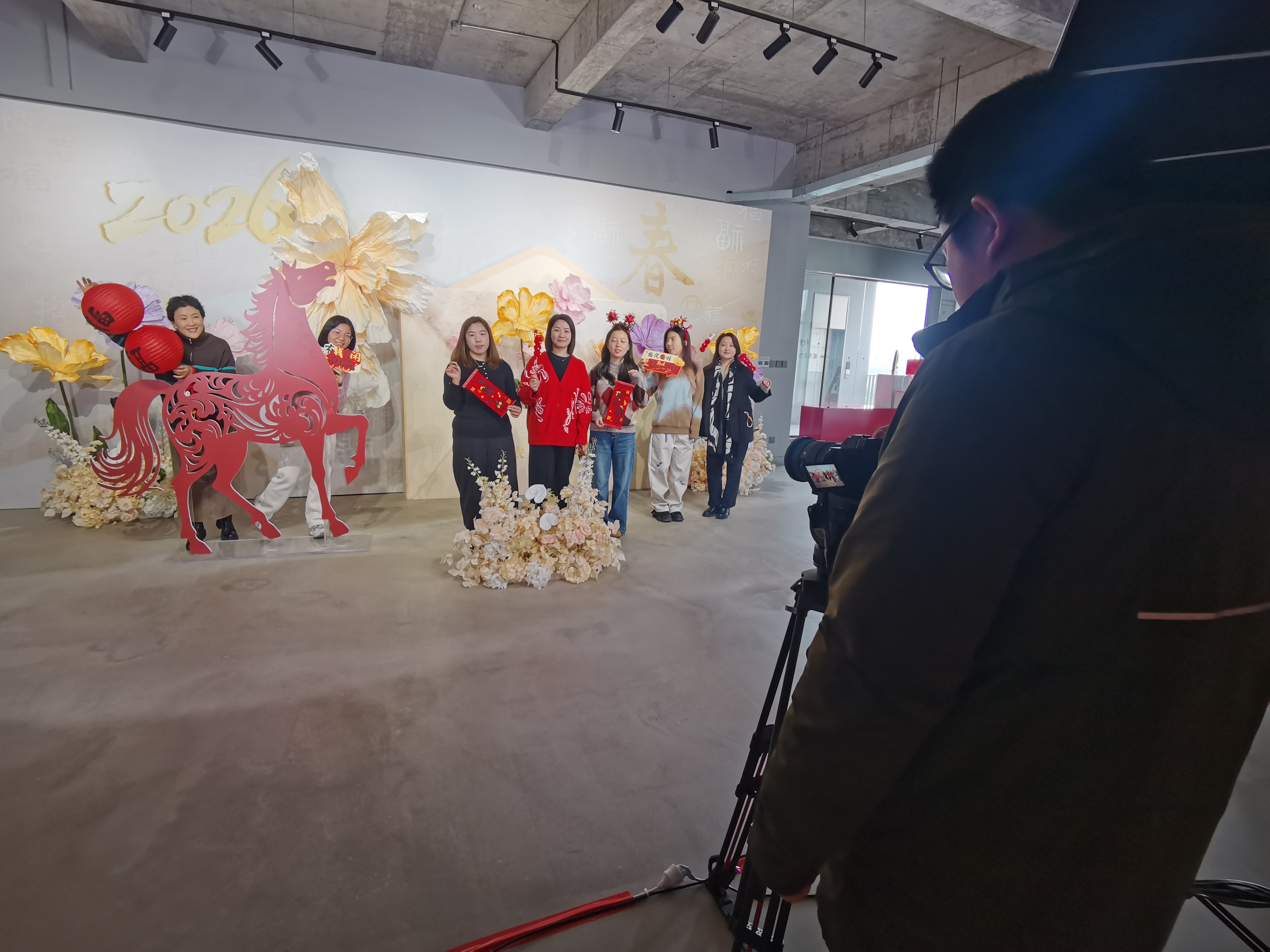 活动也吸引了辖区企业员工的积极参与。日播集团的七位女员工组团前来,一进门便被“繁花时尚”的布景吸引,纷纷在花团锦簇前调整姿态、绽放笑容。“希望团队新年新气象,事业生活都能繁花似锦!”人力资源经理戴丹笑着道出共同心愿。意犹未尽的她们随后又移步至“福至新春”背景前,或端庄或活泼,摄影师敏捷地捕捉下一个个精彩瞬间,现场气氛欢快热烈。
