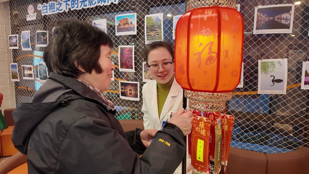 中医咨询互动区也是一片繁忙景象。中医内科李威主任医师正耐心细致地为市民提供冬季养生与慢病调理建议。面对市民们的各种疑问,李主任不仅一一详细解答,还现场示范简便的穴位按摩手法,其精湛的技艺引来阵阵赞叹。一旁的“思梁灯谜”区域同样人气高涨,谜面巧妙地融入了中医养生知识,猜中灯谜的市民笑意盈盈地领取定制小礼品,在趣味互动中加深了对健康管理的理解。