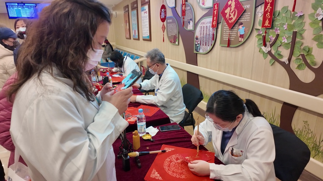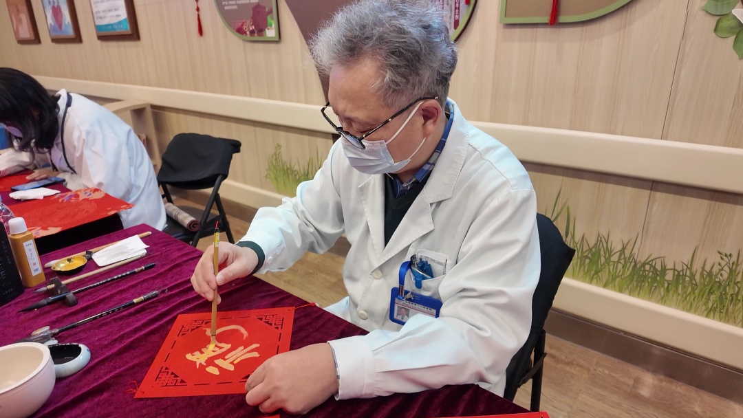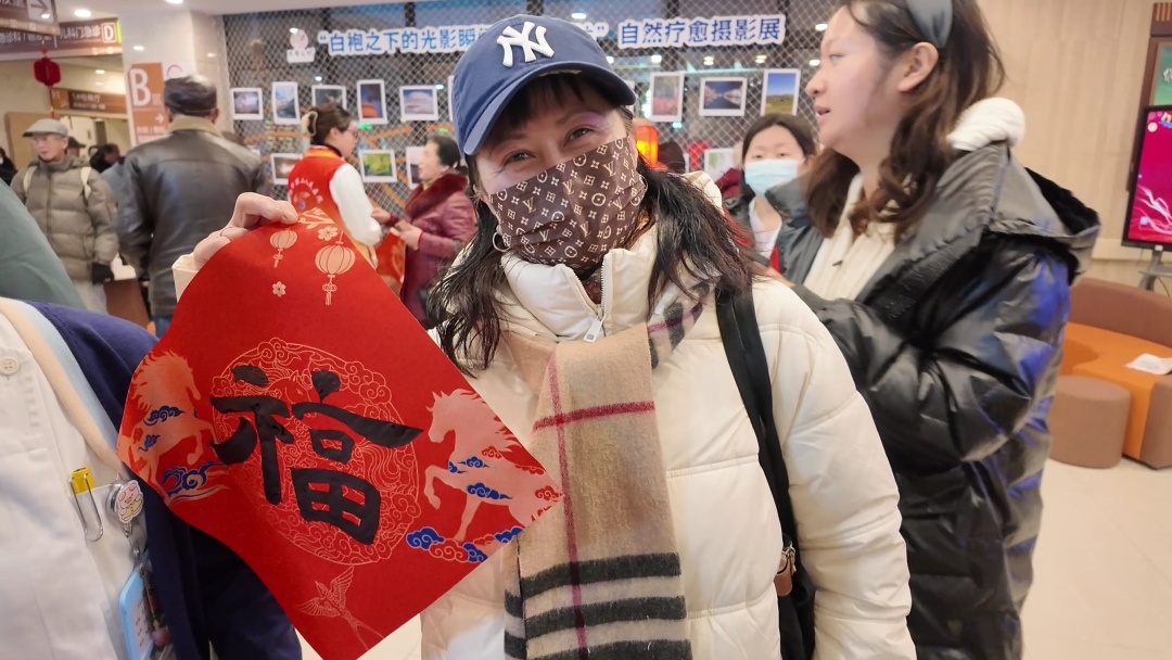 活动现场,翰墨送福区人气最旺。医院特意邀请了“翰墨轩”书画社团的数位老师现场挥毫泼墨。只见老师们笔走龙蛇,一幅幅笔力遒劲的“福”字和灵动可爱的生肖图案跃然纸上,引得众多市民纷纷驻足欣赏。市民王女士幸运地领到一张福字,她满心欢喜地展示道:“真没想到在医院还能领到手写的福字,这墨香扑鼻,年味一下子就浓起来了,候诊时的心情也轻松了不少。”活动现场精心准备了百余份手写福字,全部由老师们亲手创作,不一会儿就被市民们领取一空。那一张张红纸黑字,承载着人们对新年安康的美好期盼。