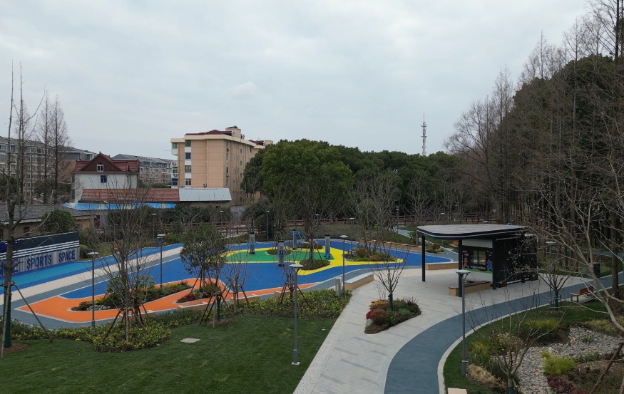 卫城花园位于金山大道以南,古城路以西,毗邻城西花苑小区,总面积约7600平方米。公园以“公园+体育”为核心理念,紧扣“乐活天地”主题,划分入口展示区、彩叶密林区、活力健身区、草坪活动区等四个特色区域,满足全年龄段人群的需求,构建出一个功能复合、体验多元、充满温度的社区公共空间,目前24小时全天候对外开放。