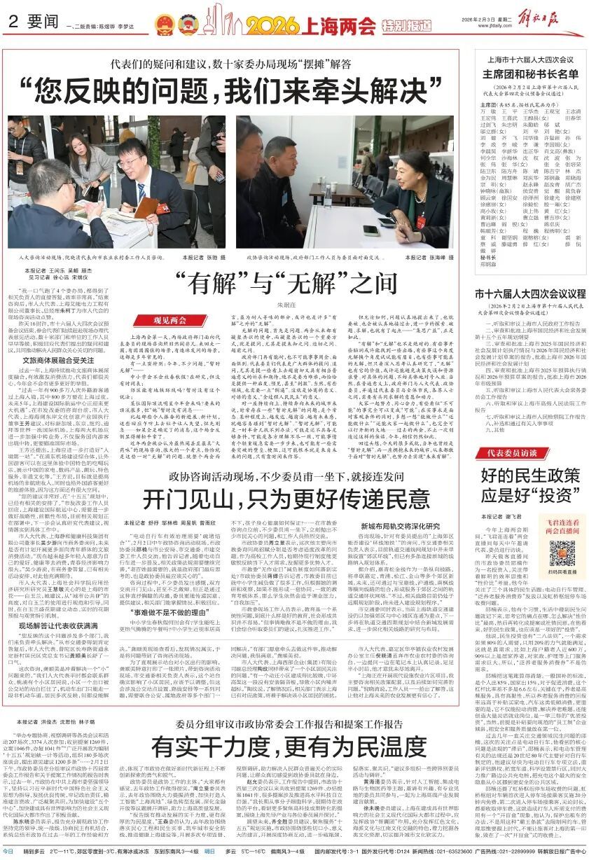 “我一口气跑了4个委办局,都得到了相关负责人的直接答复,效率非常高。”结束咨询后,市人大代表、上海艾能电力工程有限公司董事长、总经理朱柯丁为市人代会的现场咨询活动点赞。