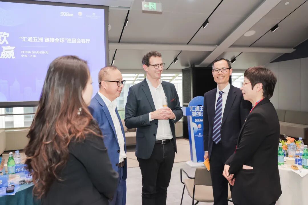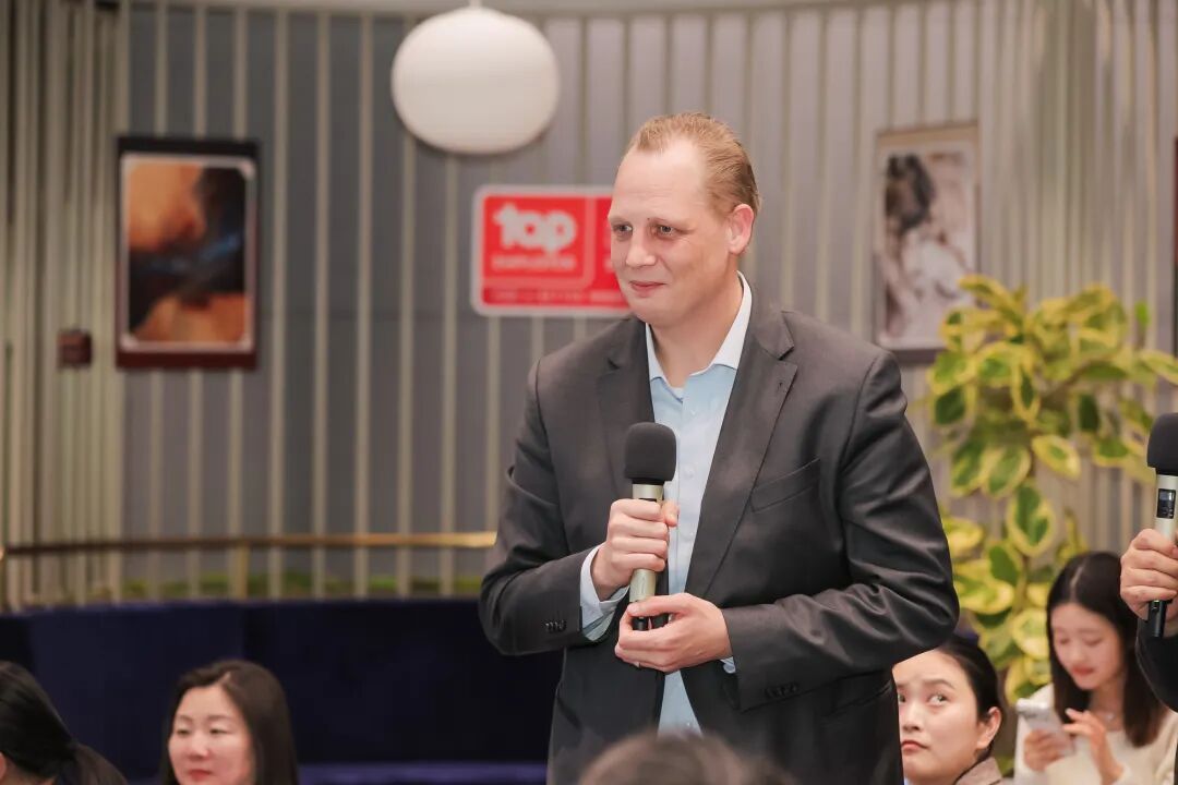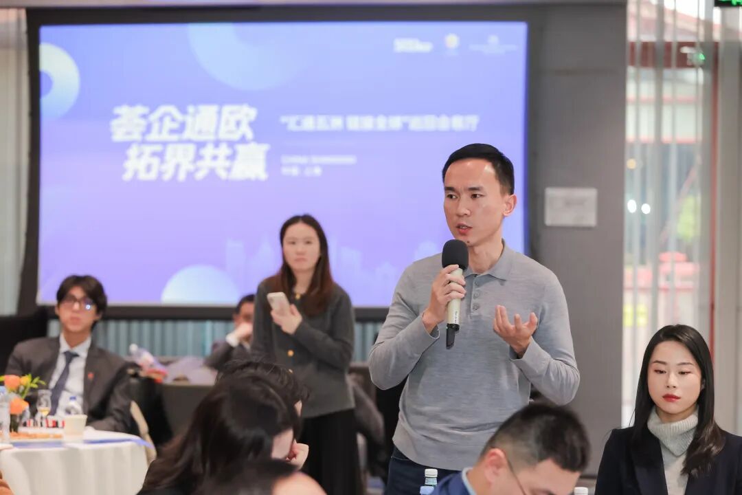 随后的企业对话环节气氛活跃、对接高效。元气森林负责人提出在欧洲建仓的需求后,保乐力加现场回应并提供供应链渠道支持;在上海拾肆街艺术科技有限公司表达提升海外品牌曝光度的意愿后,相邻的上海邦维文化传播有限公司主动分享自身宣传资源。现场问答不断,真正实现了企业间从“相识”“相联”到“相助”的实效互动。