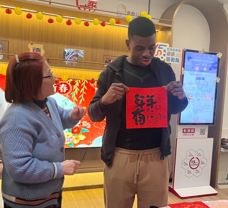 可乐来上海才四个月,这是他第二次参加微领地中环青年社区党群服务站组织的活动,也是人生中第一次庆祝中国春节。