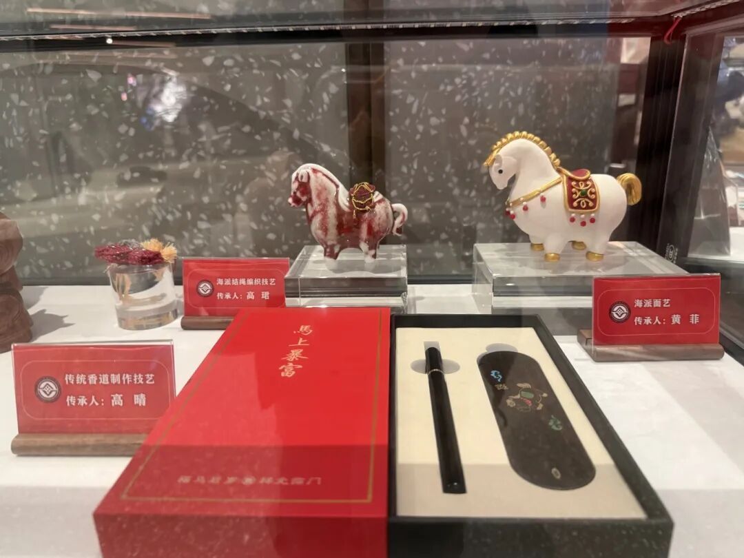 图文展区系统呈现马年由来、象征意义等内容。实物展示则汇聚海派葫芦艺术雕刻、剪纸、布艺贴画、首饰制作等非遗技艺,展出肖马木雕、蜡染马玩偶等展品,琳琅满目,韵味十足。