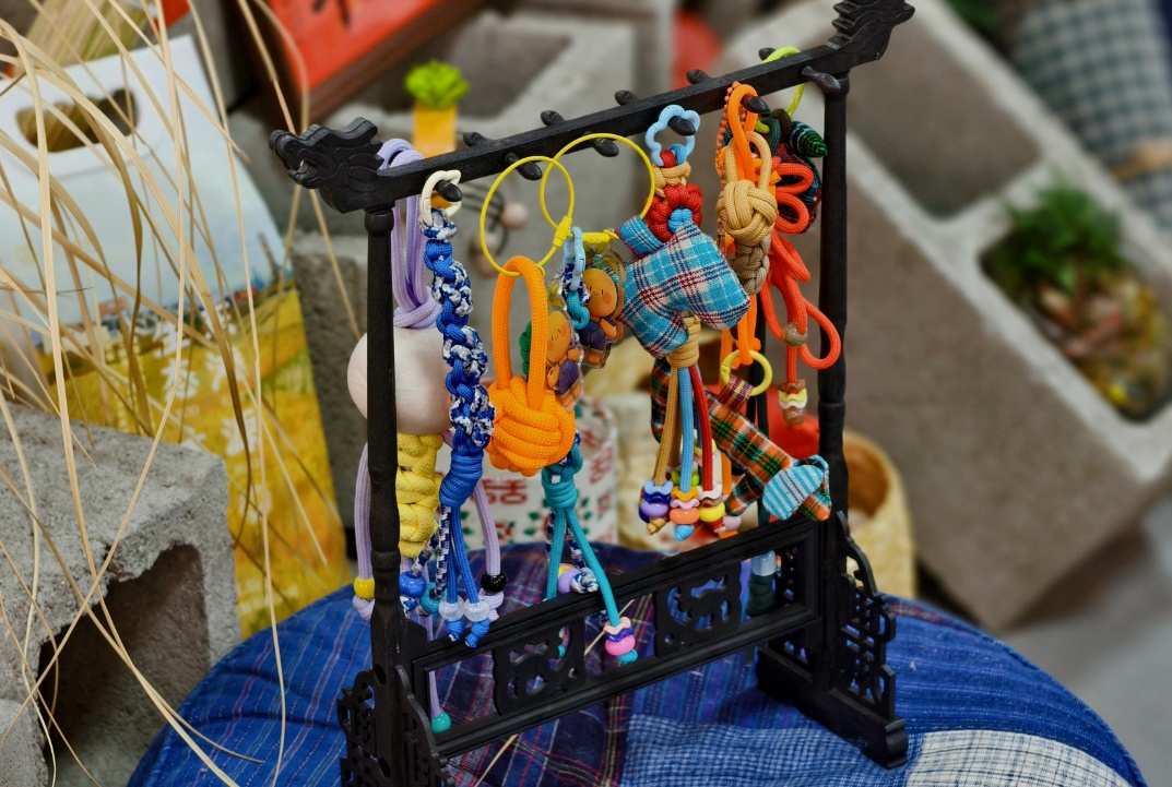 挂件采用的猴拳结编制,过去是一种用于航海作业中固定、防脱的传统绳结。岛聚文化空间创始人周李君是渔民后代,从小耳濡目染,让她对绳结有着天然的亲近感。周李君告诉记者,渔民有200多种绳结,每一种都是生产生活里“用出来的智慧”,她希望能把这些留下来,让更多人知道崇明的渔文化。不少顾客在购买时会主动询问这些绳结的编法,为此岛聚文化开展了相关课程,他们希望顾客从这里带走的,不只是一个挂件,更是一段和崇明农渔文化有关的记忆。