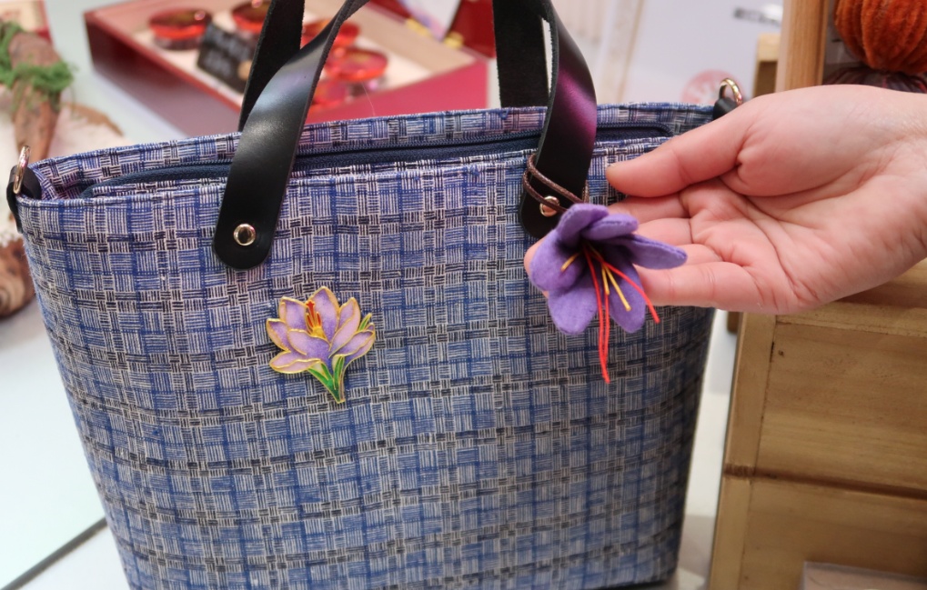 位于庙镇M515文创产业园内的Miao Lab貊貔设计集合店,更像是一间“崇明包挂集合店”,除了各式玩偶造型,以藏红花为灵感的花朵造型挂件成为特色产品。设计团队将崇明土布染出藏红花盛开时的颜色,搭配明艳的黄色花蕊,让传统土布表达出更年轻的视觉语言。部分款式还被设计成磁吸结构,能够适配更多日常场景。
