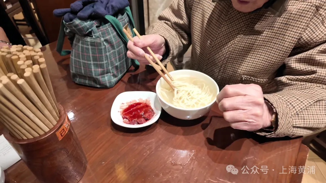 而100岁的费老伯更是对老半斋情有独钟,几乎顿顿中午饭都要在这里解决。他每年这个时候都会来尝鲜,已经记不清自己吃了多少碗刀鱼汁面。这次特意从静安寺那里早早赶来,“就想赶个早,尝尝这个春天里的第一碗鲜。”费老伯笑呵呵地说道,“味道确实蛮好的,蛮浓郁的。”