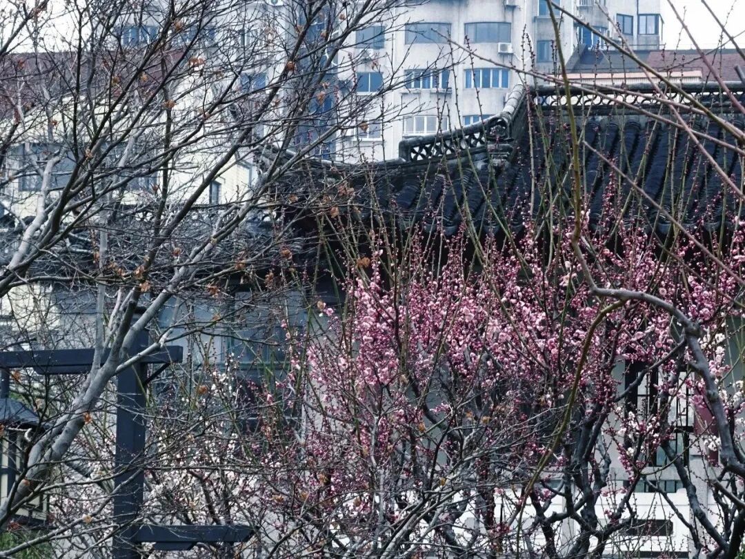 你知道吗?闵行区莘庄公园的第一缕梅香已悄然漫过湖面,碧绿的湖面被绿头鸭划开一道“人”字形的水痕,映入画面的还有湖边的梅花。