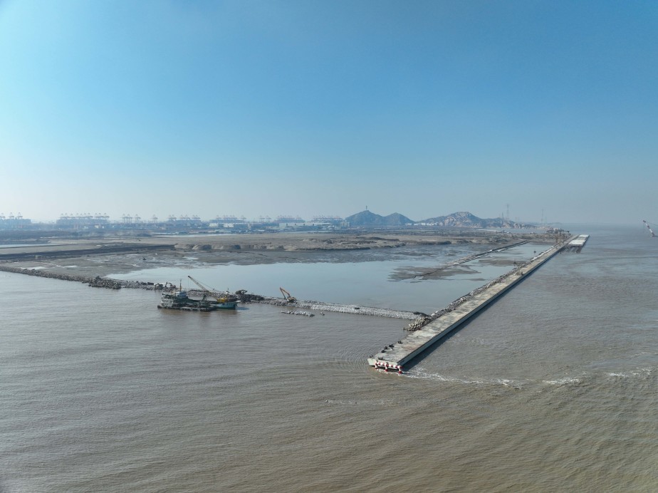 在小洋山北作业区的海面上,一条新围堤已成型。记者获悉,由中交上航局承建的上海国际航运中心洋山深水港区小洋山北西2区(北区)工程4号堤,顺利实现合龙。