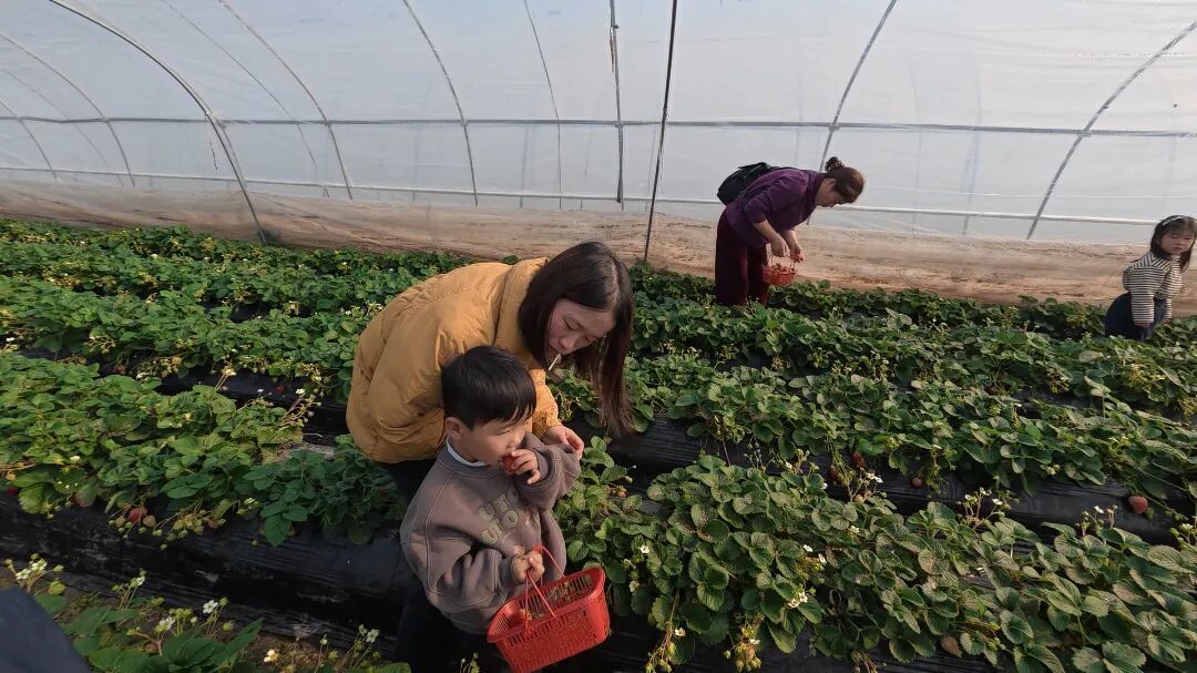 寒冬腊月,素有“中国草莓之乡”美誉的青浦区白鹤镇人气爆棚。连日来,全镇5700余亩草莓种植基地迎来寒假亲子采摘热潮,一个个温室大棚内,翠绿枝叶匍匐于田垄之上,鲜红饱满的草莓点缀其间。果香四溢中,孩子们挎着小篮穿梭垄间,在亲手采摘甜蜜果实的同时,上了一堂生动的自然实践课。 “妈妈你看,这个草莓像红宝石!”上午十点,白鹤镇鹤连蔬果专业合作社温室大棚内,小朋友们蹲在田垄边,小心翼翼捏住一颗“红颜”草莓的果柄轻轻一拧,鲜红的果实便落入篮中。大棚内土壤松软肥沃,草莓藤贴着地面蓬勃生长,翠绿的叶片下,一颗颗草莓饱满圆润,带着晶莹的露珠,散发着诱人香气。据园区负责人介绍,今年秋冬季节温差适宜,加上科学的水肥管理,草莓糖分积累充分,甜度与风味较往年更胜一筹,且全程施用羊粪、菜籽饼等有机肥,遵循绿色种植标准,孩子们可放心采摘食用。 采摘现场,除了热门的“红颜”品种,“香野”“宝珠”“东方凤凰”等10余个优质品种,红的鲜亮、粉的娇嫩,满足不同口味需求。园区工作人员化身“自然导师”,向孩子们耐心讲解草莓从开花、授粉到结果的生长周期,传授挑选成熟果实的小技巧:“要选颜色均匀鲜红、果形饱满规整,闻着有自然果香的草莓,摘的时候轻轻捏住果柄旋转,就能完整摘下啦!”在工作人员的指导下,小朋友们学会了温柔采摘的要领,既保护了娇嫩的草莓植株,又收获了满满一篮新鲜果实,脸上洋溢着丰收的喜悦。 据了解,白鹤镇作为国家地理标志认定农产品“白鹤草莓”的核心产区,凭借得天独厚的土壤条件与成熟的种植技术,培育出的草莓以果肉细腻、甜度高、香气浓著称。目前,全镇多家草莓园均面向亲子家庭开放采摘服务,随着寒假亲子游热潮的到来,每日接待游客量持续攀升。这片充满生机的草莓园,不仅让孩子们在冬日里感受到了自然的馈赠,更在趣味实践中收获了知识与快乐,为寒假时光镌刻下“莓”好的成长记忆。