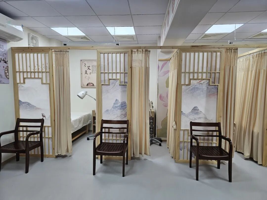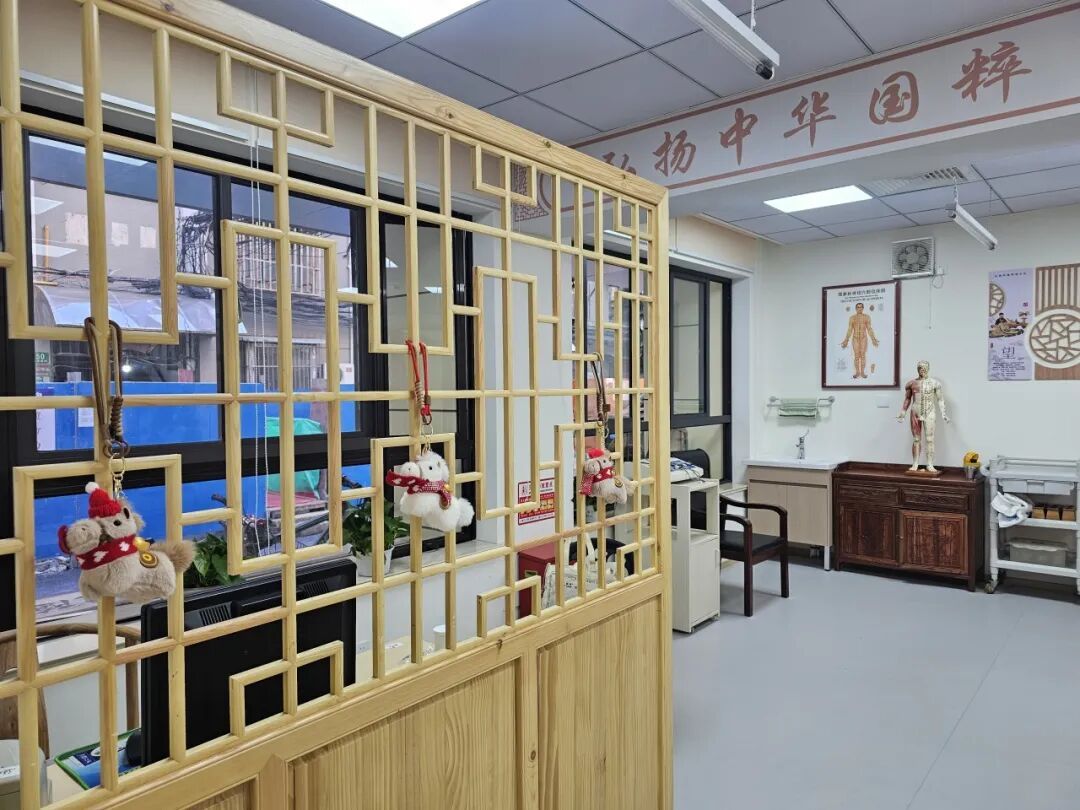 走进焕然一新的工作站,首先映入眼帘的是充满国风韵味的中医康复体验区和温馨的茶饮台。