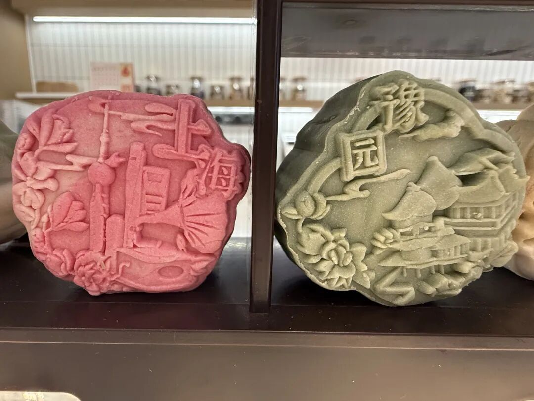 • 豫园款:采用抹茶色糕体,纹样复刻湖心亭与九曲桥的经典景致,“豫园” 二字篆刻于旁。内馅甄选紫薯、龙眼与双皮奶融合,龙眼补益心脾、养血安神,紫薯益气健脾,二者搭配遵循“春养脾胃”的中医理念,绵密香甜中滋养身心。