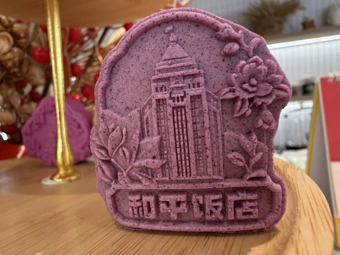 • 和平饭店款:以火龙果果粉为糕体还原这座百年建筑的八角形外观,细腻纹路复刻出建筑的立面雕花,还有象征着春天的白玉兰花。内馅搭配椰蓉与蔓越莓,蔓越莓清热生津,火龙果润肠,契合春日“清润不燥”的养生原则,层次丰富还养颜。