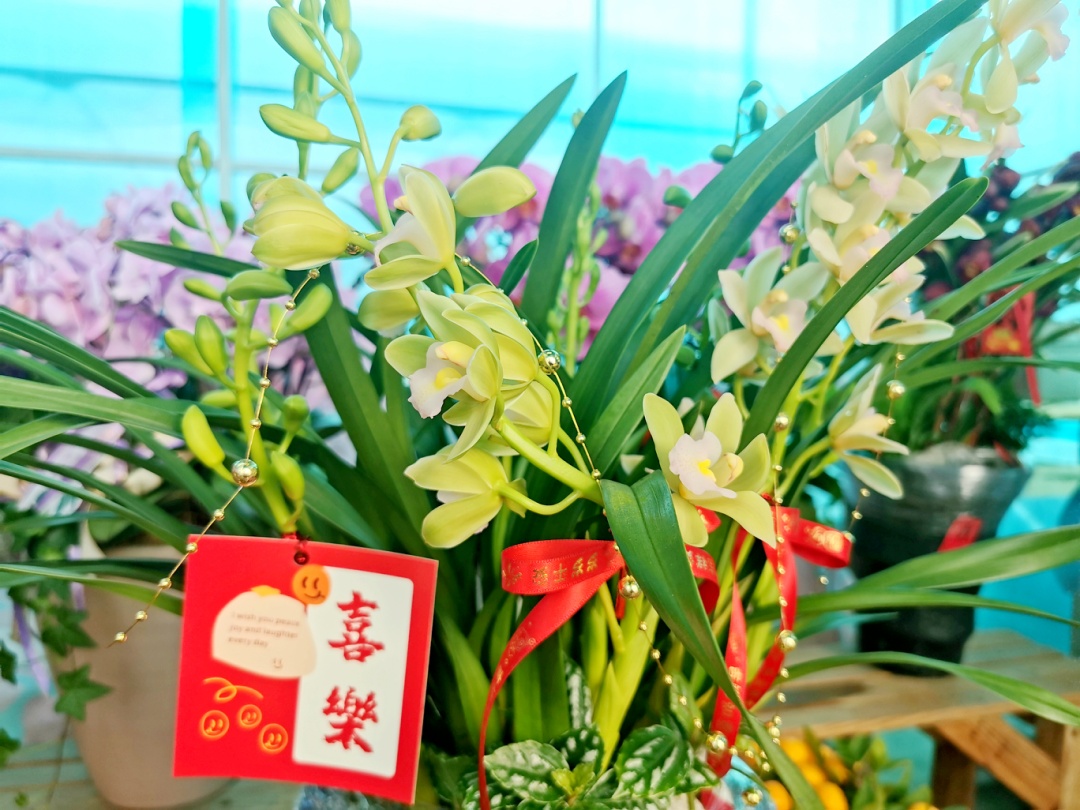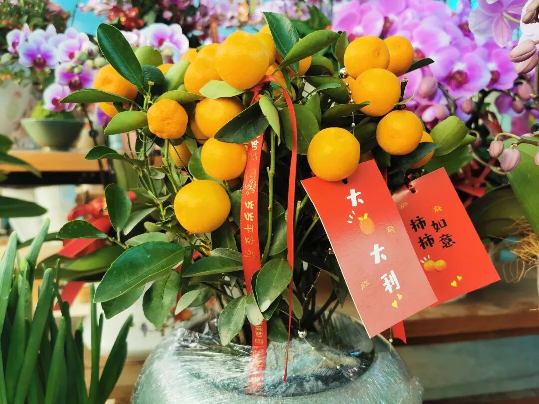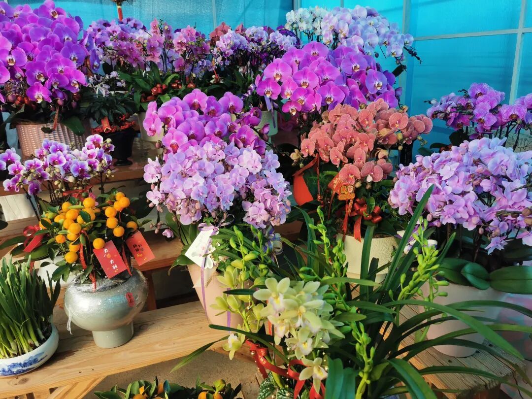 上午,记者来到位于塘湾村西陈宅的美鑫园艺花卉基地,看到大棚中各色年宵花集中亮相:颜色丰富的蝴蝶兰、花型艳丽的大花蕙兰,还有橙色点缀翠绿的金桔、火红喜庆的银柳……花棚内琳琅满目、花香四溢,红红火火的色彩与喜庆的布置交相辉映,节日氛围愈发浓厚。在这样的气氛中,很多顾客早早就前来购买,为家中添一份新彩头。