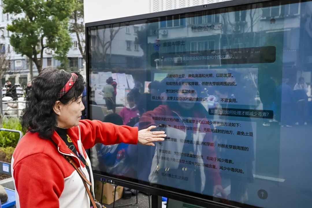 活动现场,科技感与年味巧妙融合。一边是AI智能互动屏前,居民们围着提问:“怎么看食用油是不是反复用了?”“预制菜营养会不会打折扣?”智能系统不仅即时解答,还会根据大家的高频疑问调整“科普菜单”。另一边,非遗体验区里飘来糖浆的甜香,老师傅以勺为笔,勾勒出“安心蔬菜”等造型,不少孩子举着糖画,也记住了“少吃甜食更健康”的叮嘱。