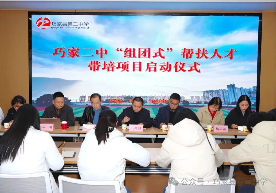 1月28日,巧家县第二中学“组团式”帮扶人才带培项目启动会顺利召开。巧家县教育体育局分管领导、学校领导班子、帮扶团队专家及全体带培学员共同参会。项目旨在通过为期三年的系统性帮扶,聚焦高中语文、数学、外语、化学、生物五大学科,着力培育骨干教师队伍,推动学校教育教学质量进一步提升,同时也服务县域教育振兴战略。