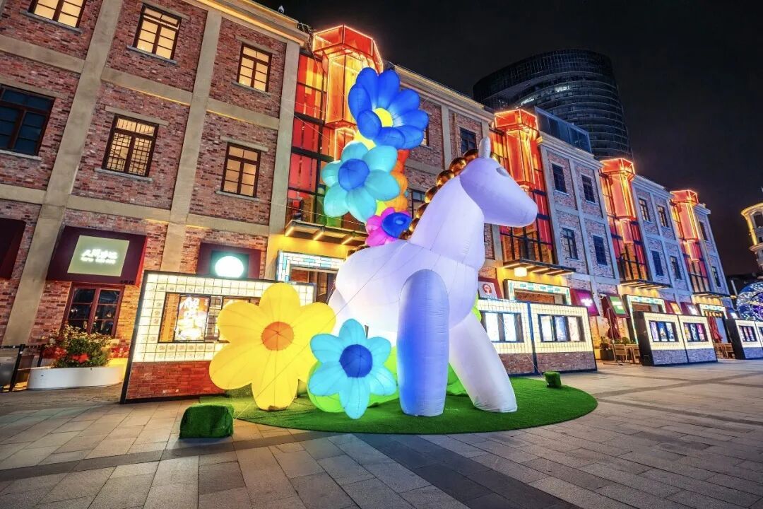 这里的“骏影瑶光”海派春节灯会已经点亮,百年弄堂中布置了以骏马为主题的大型灯光艺术装置。同时,“骏马虹彩”海派市集汇聚了非遗、手作与美食,传统年俗游戏也吸引着游客参与。